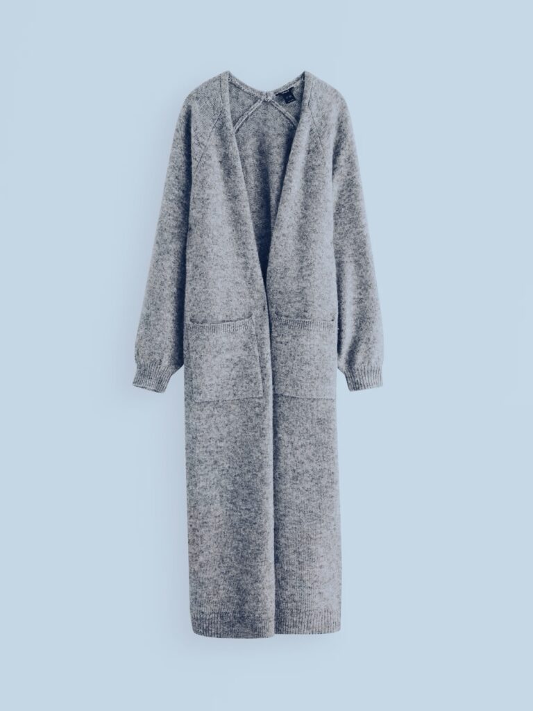Knitted long cardigan Beautifully inspiring the touch and sensual perception, while visually reminding the tonality of stainless steel. For dreamy and poetic everyday life, for lovely moments, and this year’s farewell dusk & final embers [read—ethereal evenings] on la terrasse…