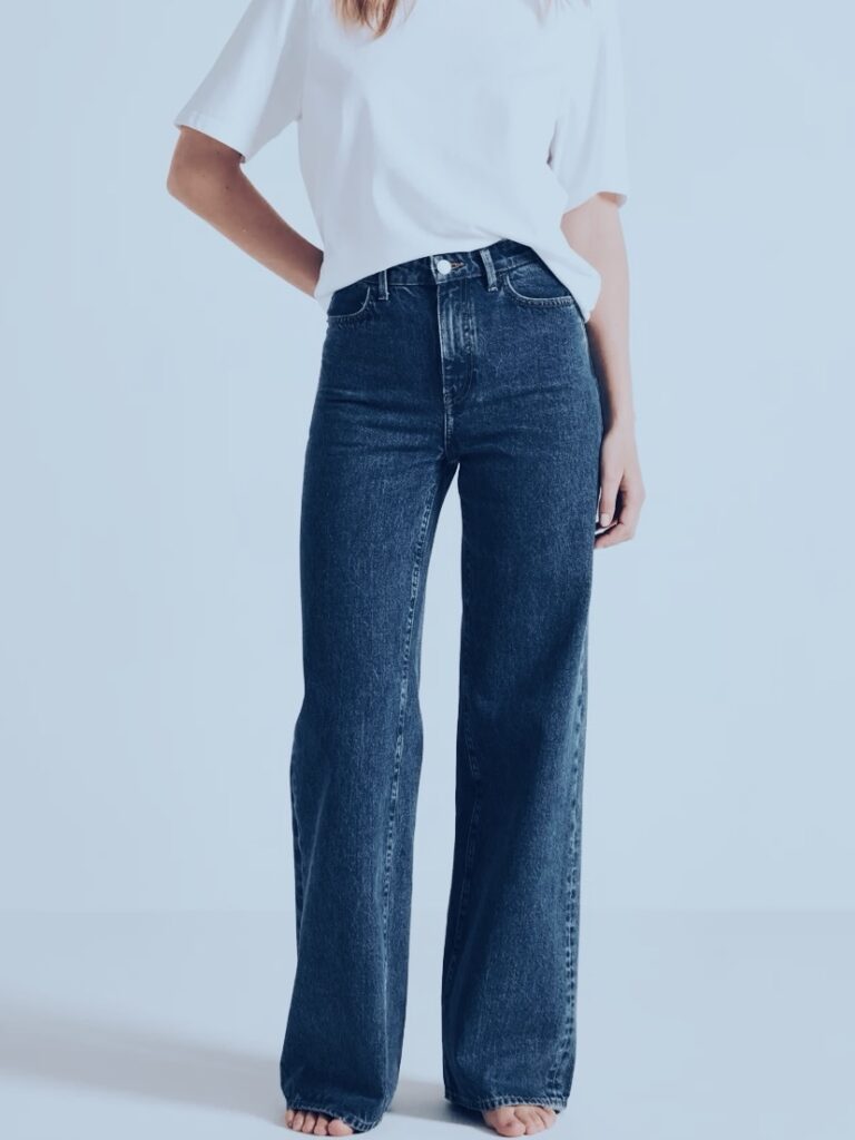 Knitted cardigan | Pink, WIDE Jackie jeans with extra wide leg